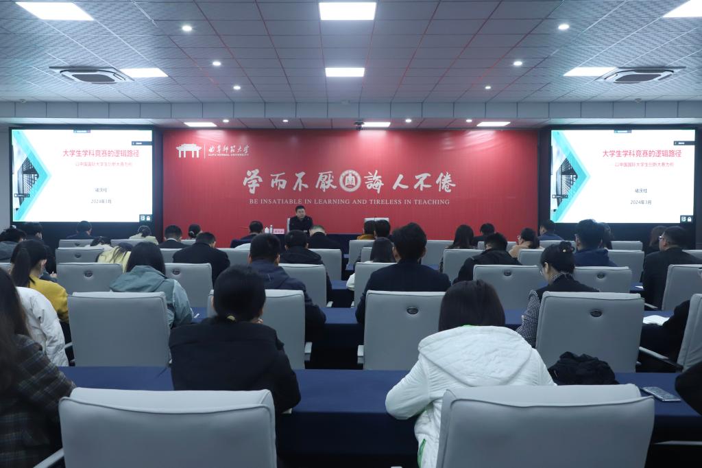 褚庆柱是教育部全国万名优秀创新创业导师人才库首批入库导师,主持国家级精品课程,获山东省第九届教学成果奖特等奖。本次报告,他结合自己多年的教研工作经历,对大学生学科竞赛排行榜进行了专业解读,深入分析高校学科竞赛发展脉络、评估与管理体系,结合创新创业类竞赛金奖案例,生动讲解了学科竞赛的九大内在逻辑,并根据学校学科特点就如何深入挖掘学科优势、结合现有成果资源培育竞赛项目指出了下一步努力方向。