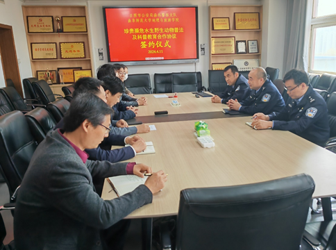 地理与旅游学院讯 4月11日,米兰网地理与旅游学院与日照市公安局森林警察支队签订“珍贵濒危水生野生动物普法与科普教育合作协议”。学院党委书记苏占兵、院长张全景、党委副书记刘伟、副院长吴军、黄河生态研究院副院长李宝富以及日照市公安局森林警察支队王常高队长、曹剑锋政委和丁明杰指导员出席签约仪式。