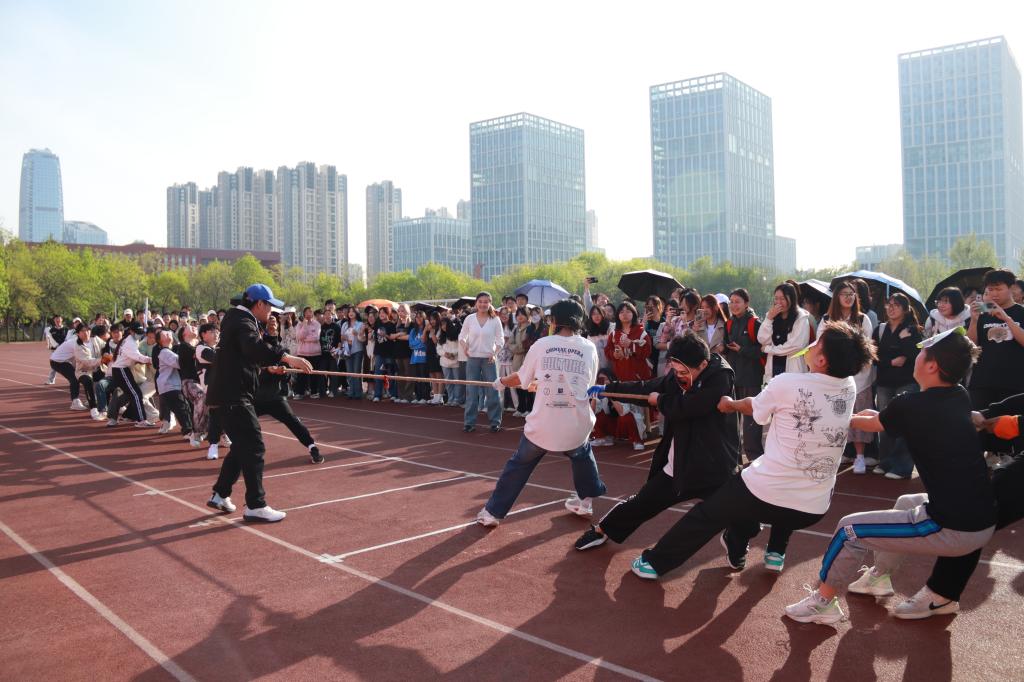拔河比赛作为本次活动的首项赛事,将现场气氛燃到高潮。比赛分为初赛、决赛两个阶段,学生会代表队、运动员代表队、新一教二队以及新二教四队四个队伍参与比赛。赛场上,队员们精神饱满,齐心协力,“一,二,一,二”的喊声极具气势。友情与激情齐汇,策略与力量并重,生动展现出传媒学子风华正茂、拼搏向上的精神面貌。经过激烈比拼,运动员代表队最终夺得桂冠。