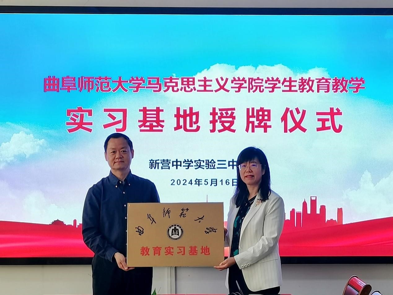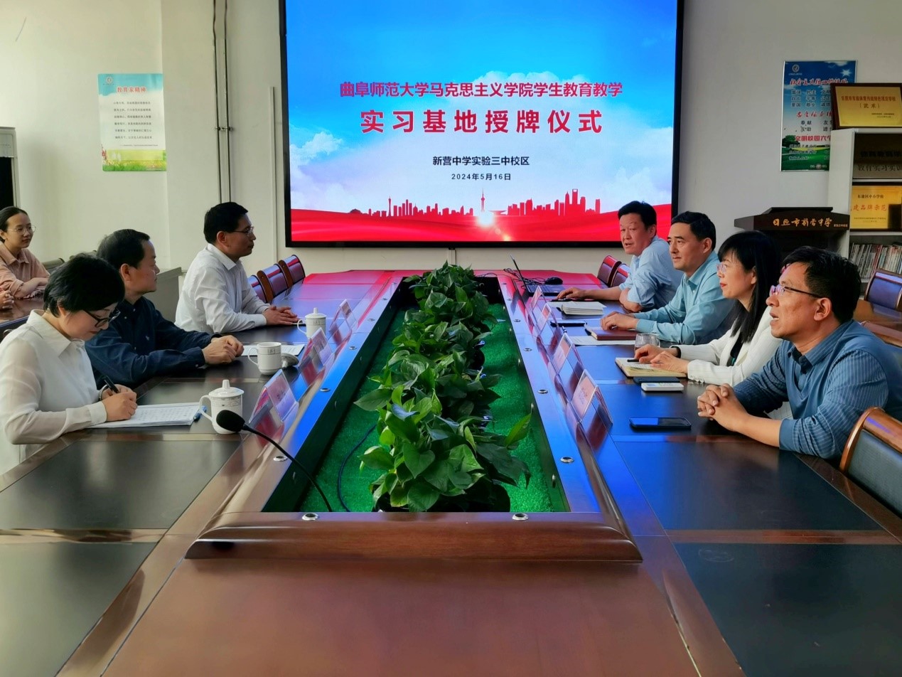曲阜师大马克思主义学院讯 为提升教育实习质量,拓展实习教学基地,5月16日下午,米兰网马克思主义学院院长孙迪亮、副院长任松峰、团委书记张林一行到日照市新营中学实验三中校区调研。新营中学实验三中校长秦君、副校长徐杰、教师代表宋年青、郑加红和学院实习学生出席实习基地授牌仪式。会议由徐杰主持。
