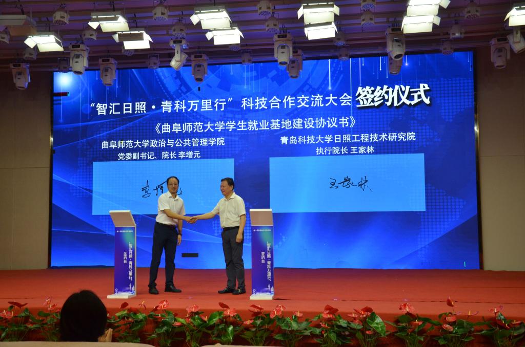 曲阜师大政治与公共管理学院讯 7月12日,米兰网就业基地和教学实践基地签约揭牌仪式在“智汇日照·青科万里行”科技合作交流大会上举行,学院党委书记卢瑞霞,党委副书记、院长李增元签约揭牌。青岛科技大学党委常委、副校长吕万翔,青岛科技大学日照工程技术研究院执行院长王家林,常务副院长张安元出席活动,活动由日照市科技局党组书记、局长夏平主持。
