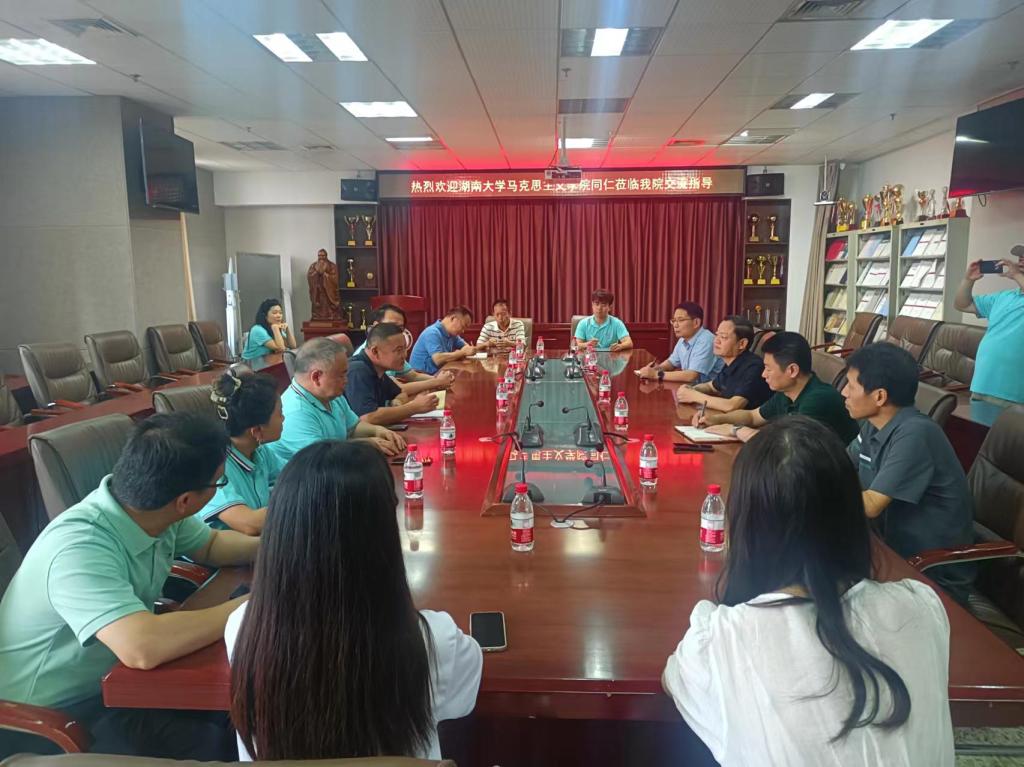 孙迪亮对吴增礼一行的到来表示欢迎,介绍了马克思主义学院的办学历史和特色、思政课课程建设、师资队伍建设、形势与政策课开展情况、科研情况等。孙迪亮表示,湖南大学马克思主义学院形势与政策课教学真正做到了请进来与走出去相结合,课堂教学与课外讨论、交流相结合,充分调动了学生的课堂积极性与学习兴趣,实现了“入耳、入脑、入心”的教学目标与教学效果,给我们提供了宝贵的学习经验,下一步将会通过加强教师互派互访、深入科研论文指导等方面开展全方位、多层次、宽领域的合作,共同推进新时代马克思主义学院建设新局面。