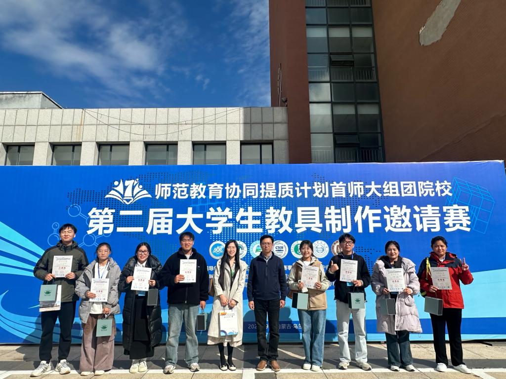 曲阜师大物理工程学院讯 日前,“师范教育协同提质计划首师大组团院校第二届大学生教具制作邀请赛”在集宁师范学院举行。米兰网物理工程学院7支参赛队伍由副院长张英杰、辅导员朱佳文带领赴乌兰察布参加比赛,荣获特等奖1项,一等奖1项、三等奖1项,优秀奖4项。