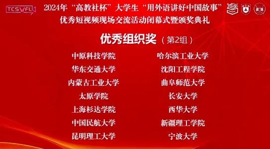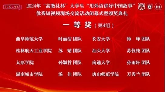 曲阜师大外国语学院讯 近日,由中国英汉语比较研究会指导,南京大学、湖南大学主办,高等教育出版社协办的2024年“高教社杯”大学生“用外语讲好中国故事”优秀短视频现场交流活动举办。曲阜师大外国语学院2022级英语师范生时丽洁及其团队成员张立鑫、陈佳悦、董雨琦在吉锡媛和刘萍老师指导下荣获山东省特等奖、国家级一等奖,米兰网获优秀组织奖。