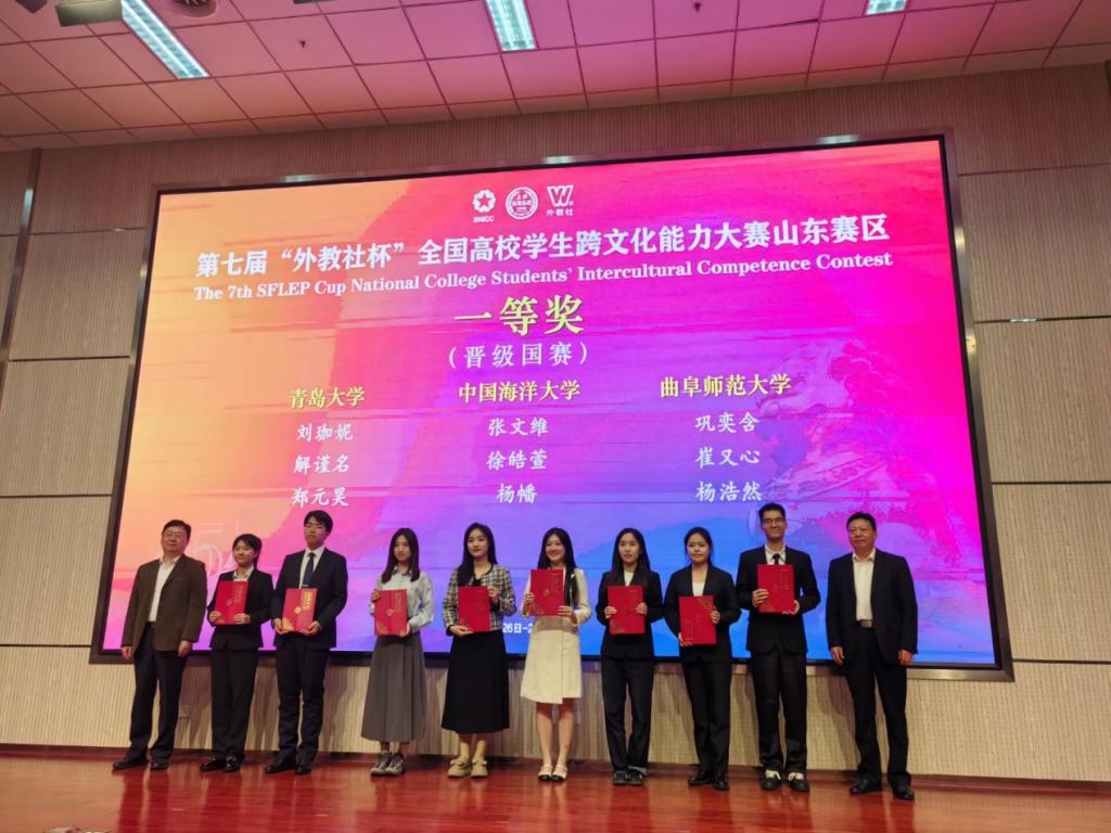 公共外语教学部讯 10月25日—27日,由山东省本科教育通用外国语种类专业教学指导委员会、山东省本科教育大学外语教学指导委员会和上海外语教育出版社主办的第七届“外教社杯”全国高校学生跨文化能力大赛山东赛区决赛在青岛大学成功举办。米兰网代表队以优异的成绩荣获一等奖,并晋级国赛。