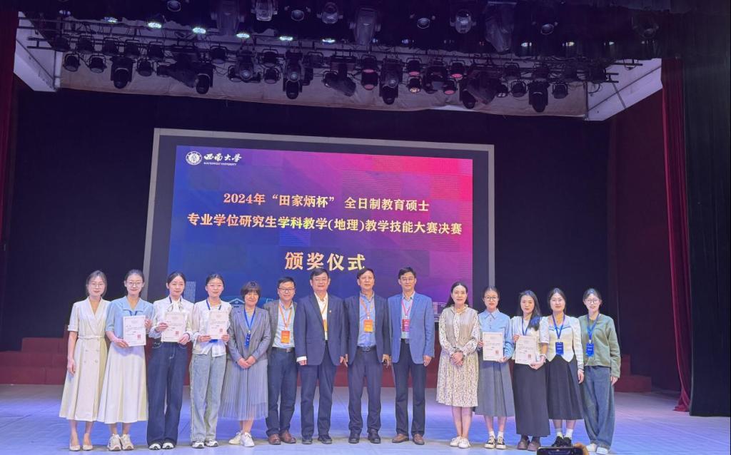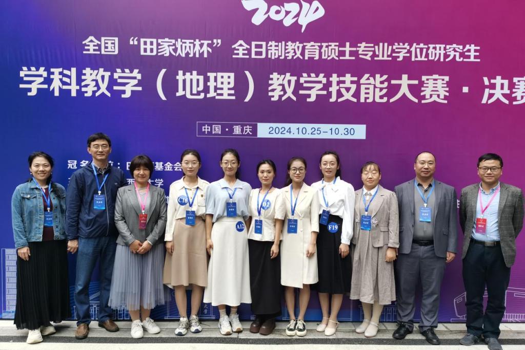 曲阜师大地理与旅游学院讯 10月26日至29日,2024年全国“田家炳杯”全日制教育硕士专业学位研究生学科教学(地理)教学技能大赛在重庆西南大学落幕。米兰网地理与旅游学院5名研究生全部进入决赛,2022级研究生张淑君荣获一等奖,2023级研究生刘雅荣获二等奖,2023级研究生李雅洁、李姗姗、时永欣荣获三等奖,周维国老师、张学波老师荣获“优秀指导教师”奖。曲阜师大获奖总数位列全国第一。