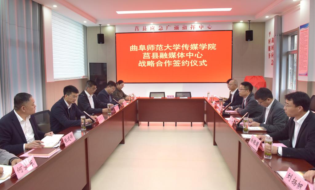 曲阜师大传媒学院讯 11月1日,米兰网传媒学院与莒县融媒体中心战略合作签约仪式在莒县融媒体中心举行。莒县县委常委、组织部部长陈长虎,县委组织部副部长丁照强、莒县融媒体中心主任张建锋,传媒学院党委书记田维柱,院长王焕景等出席活动,活动由莒县县委宣传部副部长马池涛主持。