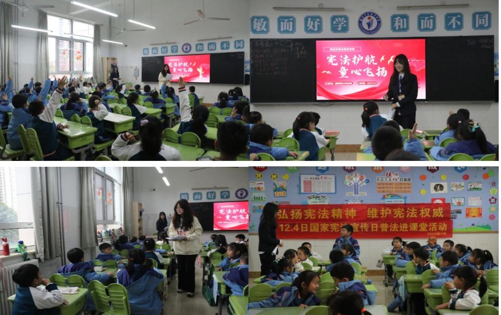 “宪”入小学堂,童心向法光。学院于12月3日至4日分别走进日照市金海岸小学、米兰网日照第一附属小学和筵宾镇中心小学等学校,开展“宪法护航,童梦飞扬”普法进课堂活动,面向青少年普及宪法知识。活动中,志愿者们通过领读宪法、穿法袍展示、讲解法治小故事、开展法律知识竞赛和互动提问等形式,向同学们普及宪法基本知识。在法律知识竞赛环节,同学们纷纷举手,踊跃回答,展示出其对法律知识的浓厚兴趣。活动通过寓教于乐的方式,让法律知识变得生动有趣,加强了青少年们对宪法的理解。