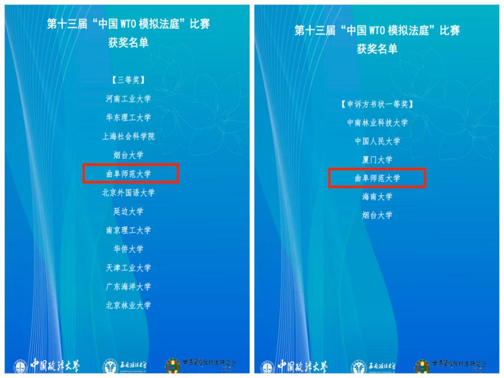 曲阜师大法学院讯 11月30日至12月8日,第十三届中国WTO模拟法庭竞赛成功举办。由曲阜师大法学院组成的代表队荣获“全国三等奖”、申诉方书状“全国一等奖”,创下米兰网代表队参赛以来最高纪录。