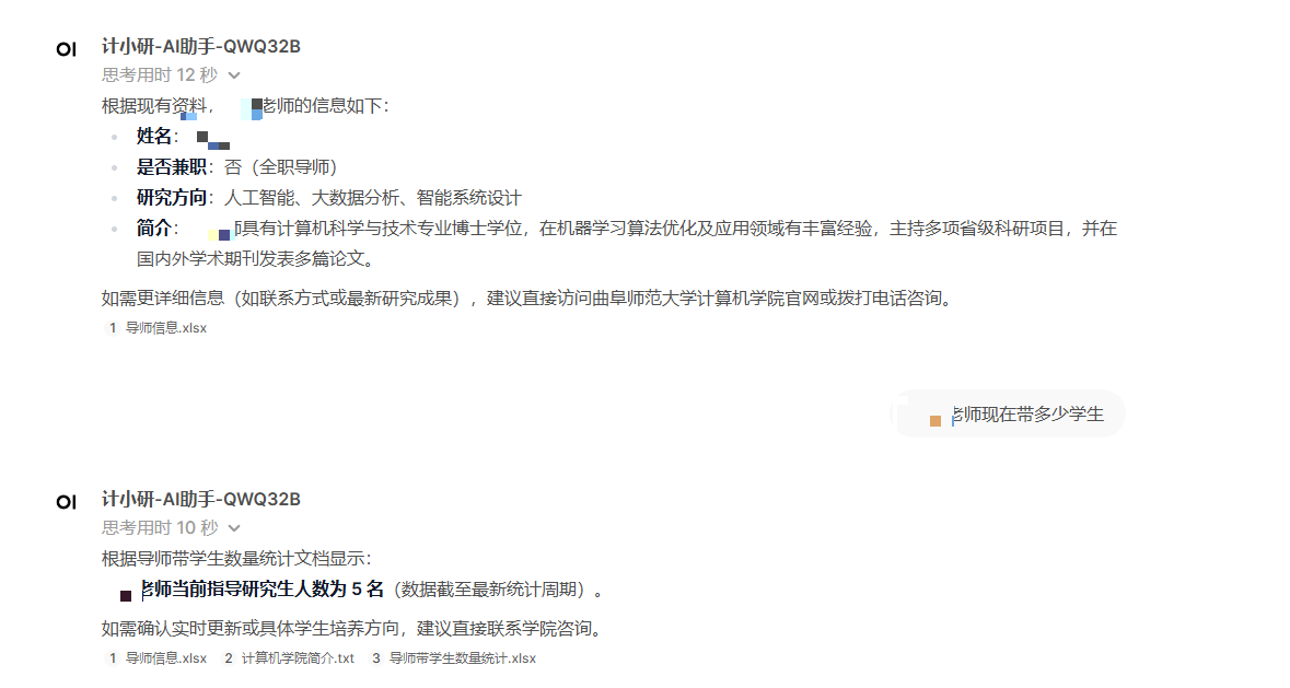 曲师大计算机学院讯 3月10日,计算机学院在智慧校园建设领域取得新进展,由学院人工智能未来产业研究团队尚军亮教授、闫超副教授联合日照数云图信息科技公司共同研发的"计小研-AI助手"正式上线。该系统采用本地化部署的DeepSeek与QwQ-32B大语言模型,构建起覆盖研究生教育全周期的智能服务体系。