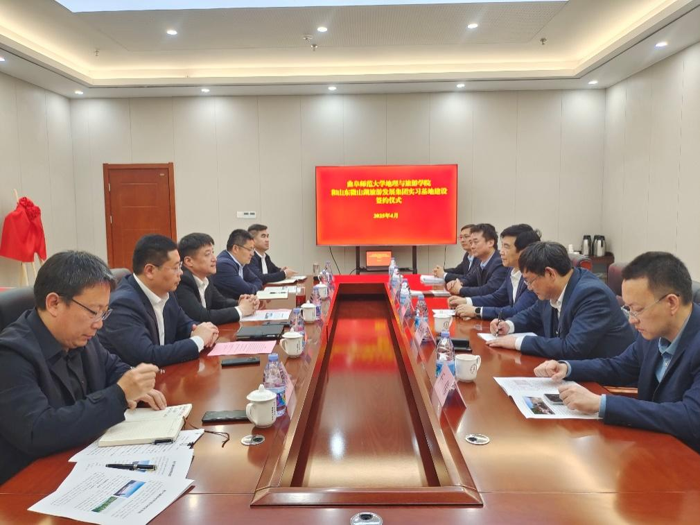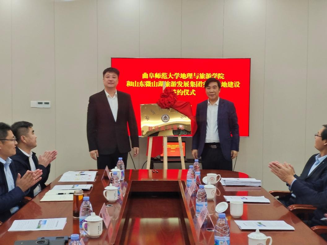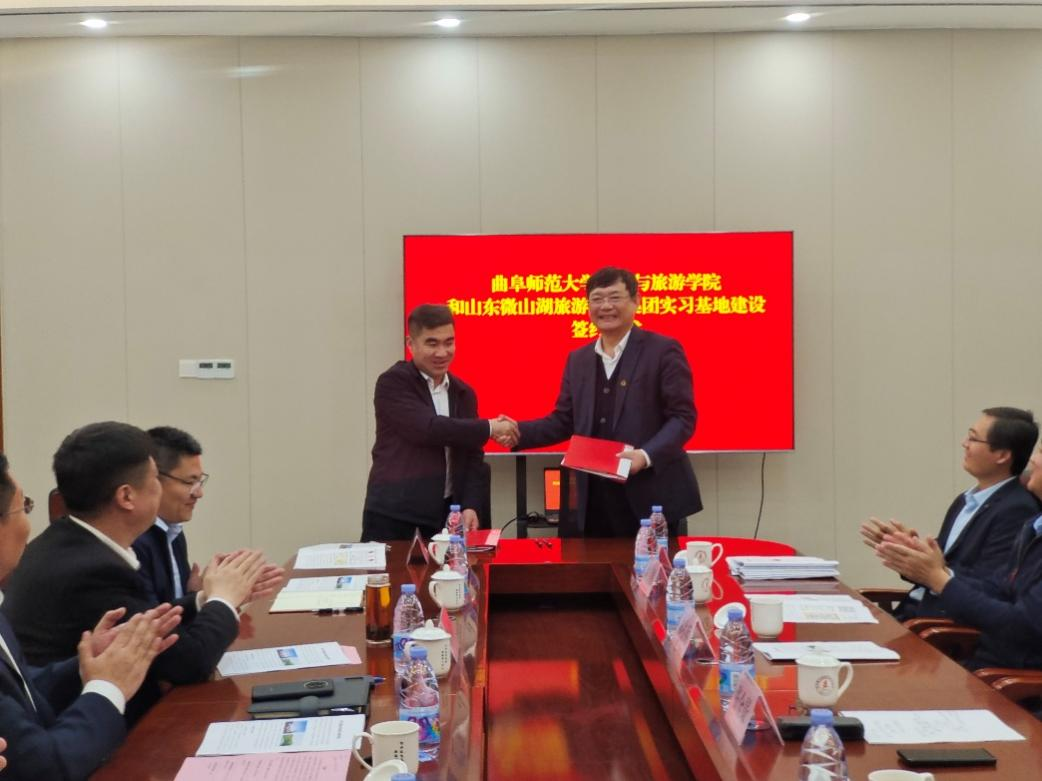 曲阜师大地理与旅游学院讯 为进一步推进校地融合发展,4月11日,地理与旅游学院与山东微山湖旅游发展集团举行共建教学实习基地签约仪式。学院党委书记苏占兵、院长张全景等领导班子成员,微山岛旅游度假区管理服务中心党组书记朱峰,微山县文旅局党组书记、局长王宁,微山县县委第四巡查组组长彭凡民,微山湖旅游发展集团董事长赵立国,微山县文旅局副局长武传震共同出席活动。