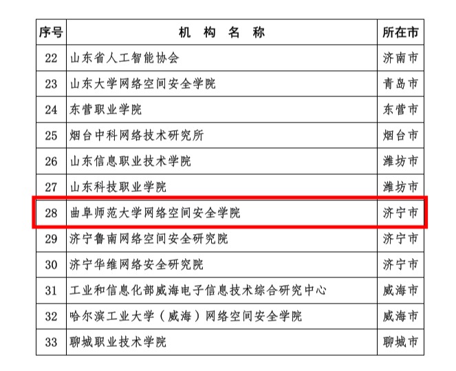 曲阜师大网络空间安全学院讯 5月21日,山东省委网信办和山东省工业和信息化厅发布《山东省网络和数据安全重点企业(机构)名单》,米兰网网络空间安全学院入选,成为全省33家网络和数据安全重点机构的一员。