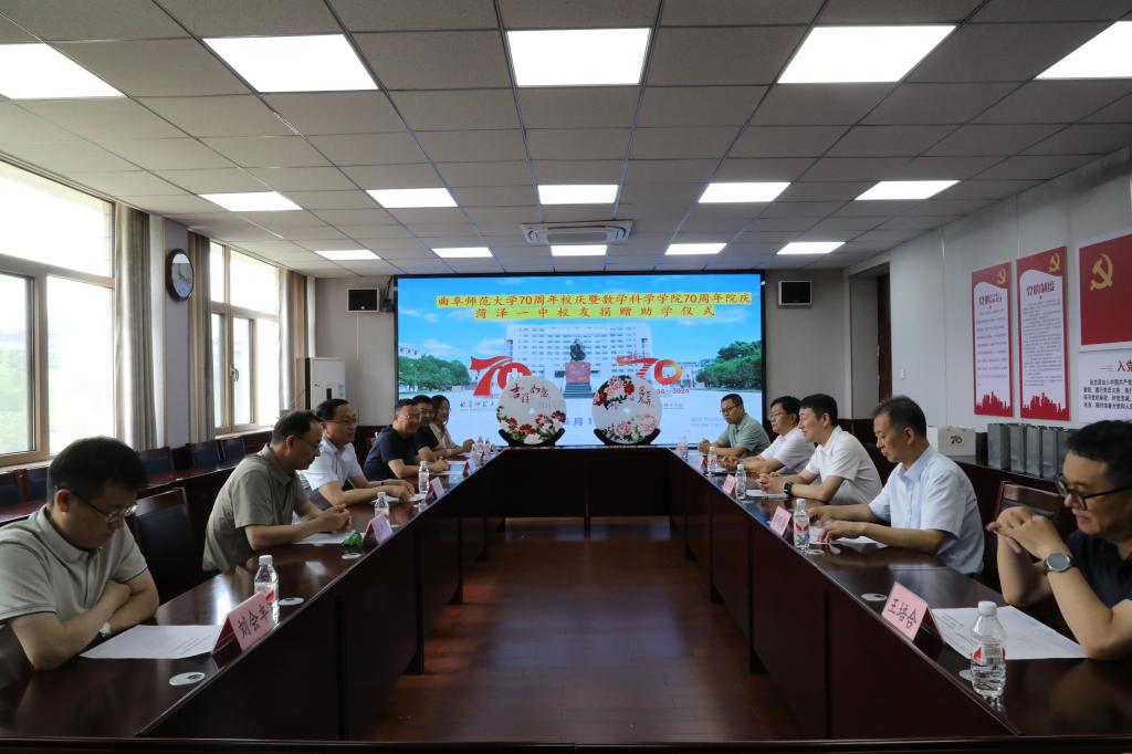 数学科学学院讯 6月1日,菏泽第一中学校友捐赠仪式在曲阜师大举行。曲阜师大数学科学学院1999届毕业生、菏泽第一中学党委书记、校长张斌教授出席仪式。