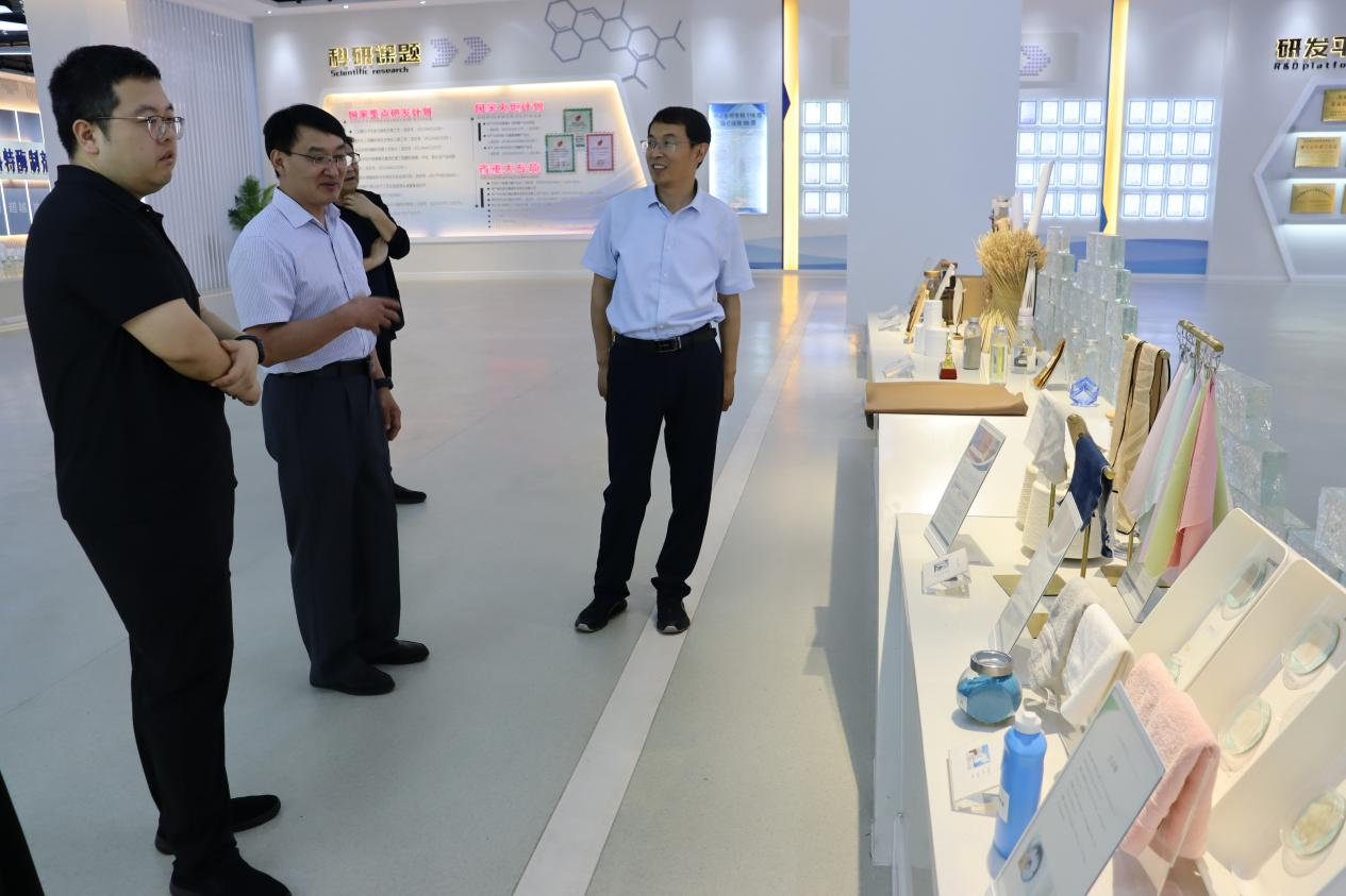 在鲁洲集团,赵杰一行参观了企业的生产车间,听取了企业负责人关于企业生产经营情况的介绍。在泓达集团,赵杰一行与企业负责人进行了座谈交流,了解了企业的人才需求情况。在山东隆大生物工程有限公司,赵杰一行参观了企业的产品展厅。