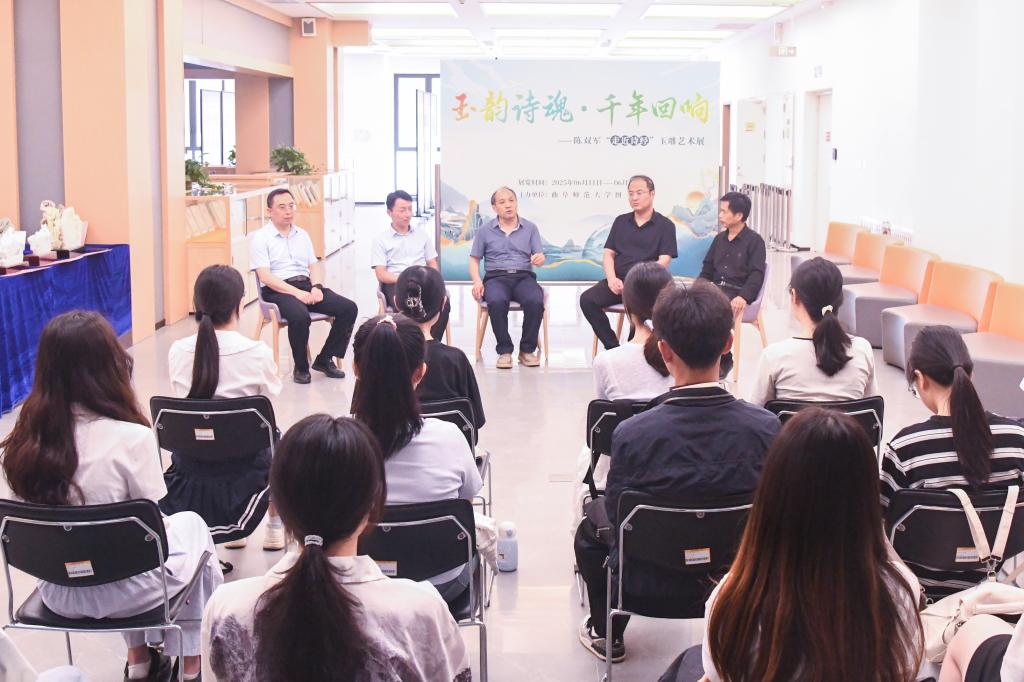 曲阜师大图书馆讯 6月11日上午,玉韵诗魂·千年回响——陈双军“走近诗经”玉雕艺术展在米兰网图书馆举办。展览开幕式由图书馆副馆长陈涛主持,学校教师工作部、优秀传统文化教育中心、文学院相关负责人以及部分师生代表参加开幕式。