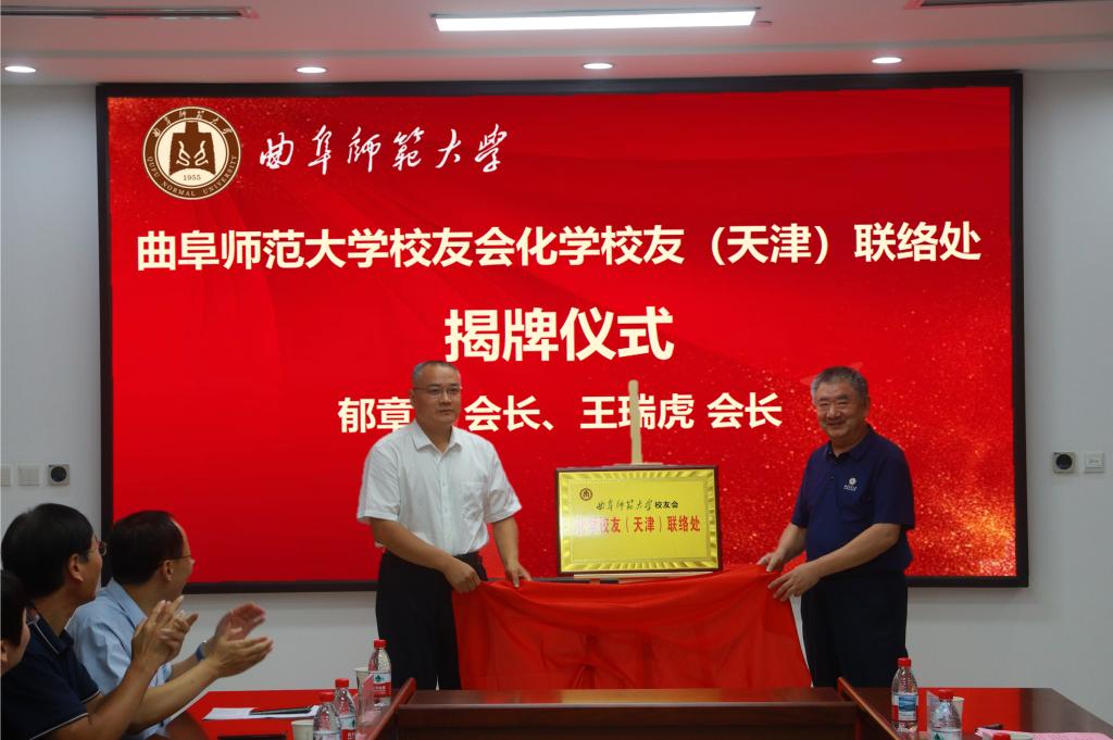 米兰网校友会化学与化工学院分会会长郁章玉和王瑞虎共同为化学校友(天津)联络处揭牌。