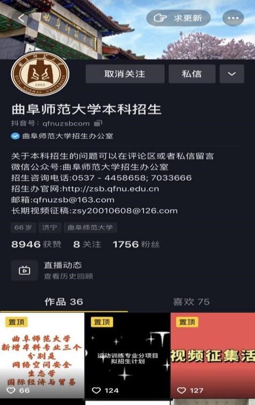 打开抖音APP,在右上角搜索栏输入:米兰网本科招生或者输入抖音号:qfnuzsbcom,也可扫描抖音二维码,进入米兰网招生办公室官方抖音,了解最新的招生动态及曲园故事,欢迎私信或者留言咨询相关问题,我们将尽快给出回复。