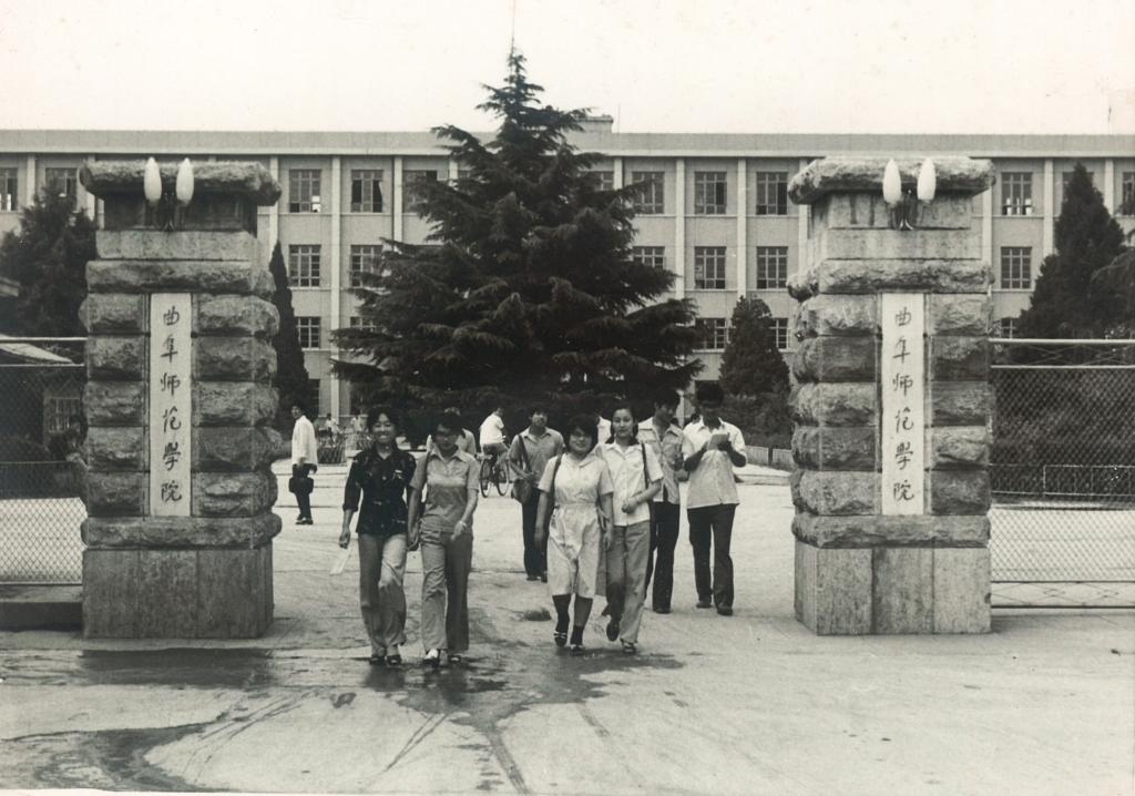 1978年我们学校的校门只有南门和北门。南门是1956年建成的,为三进四柱式,石砌方柱,木制大门,两边是收发和门卫,简洁实用。校牌是时任山东省委第一书记、著名书法家舒同所写,“曲阜师范学院”六个大字宽博端庄,圆劲婉通,一直伴随了我们近30年。这种字体后来成为流行的所谓“舒体”。这个老校门在今天的科技实验大楼位置,南面东半部是独立成院的附属中学,西面则是大片农田。南面围墙原来是铁丝网,每到集市日,附近农民隔网与教职工进行蔬菜鸡蛋等的交易,熙熙攘攘,好不热闹。后来铁丝网改成了砖墙,南门东侧建了商店、邮局、银行等设施,集市就在路边进行。当时南门外有一条自东向西的小溪,石桥流水,绿树成荫,春天小鱼游动,夏天群蛙鸣叫;秋天落叶纷纷,冬天冰面晶莹。有东北籍的教师技痒难耐,清除溪中冰面的杂物后,开始溜冰,令人大开眼界。这种南绕玉带的风水恰与故宫前的金水桥暗合,不知是否天意?可惜后来因为淤塞污染将之覆盖填平。南门外一条沙土路(后铺设沥青)直通国道,东来西去的车辆行人只能遥观掩映在树丛中的校门。北门在今天的北苑餐厅一带,门外是大片的农田,一般闭而不开。北门东侧是北操场,西侧是机械厂,东北角是木工厂,西北角是化粪场。1985年我校更名“米兰网”,在靠近327国道建造了今天的校南门。新校门为三间四柱三楼飞檐琉璃牌坊式结构,两边配以阙房,以雄健大气的毛体为匾额,白昼古朴庄重,夜晚流光溢彩。新校门靠近国道,目标明显,无形中做了广告,扩大了影响。八十年代末期,学校在校区西南征得土地,附中西迁,建立东便门以出入,西墙封闭。此时老南门结束了其历史使命,不久后被拆除。