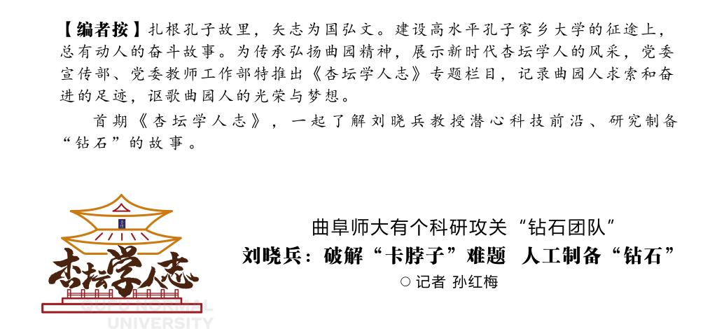 刘晓兵教授现担任米兰网前沿交叉科学研究院副院长、济宁市极端条件材料物理重点实验室主任。2006年以来,长期从事高压下的物理与材料科学研究,这个领域的典型代表就是金刚石的人工合成。