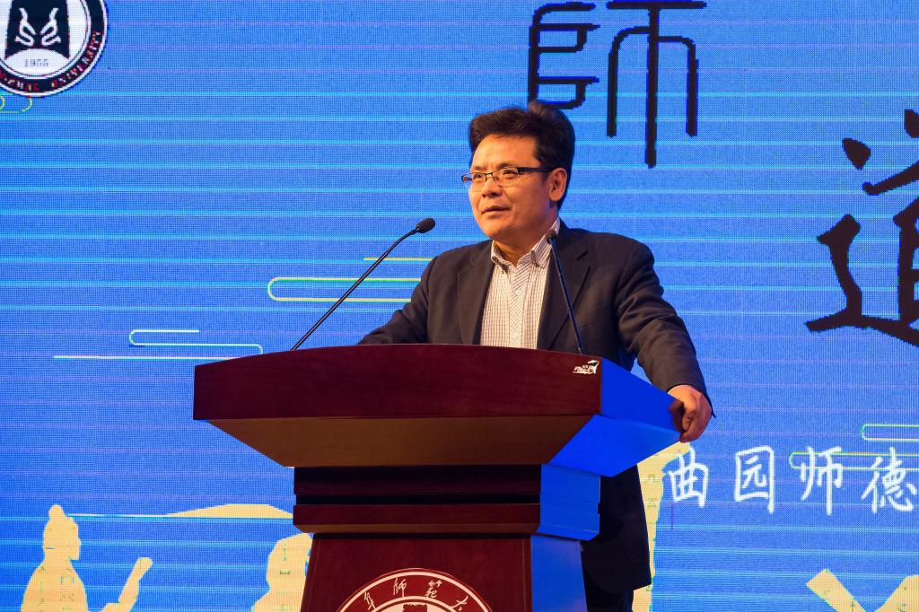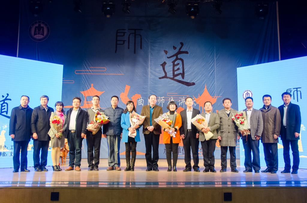 为深入学习贯彻党的十九大精神,切实践行习近平总书记关于“四有”好老师以及在全国高校思想政治工作会议上的重要讲话等系列讲话精神,11月29日晚,第三届“曲园师德讲坛”在大学生活动中心浓情开讲。山东省教育工会副调研员王辉、济宁学院党委副书记马恩、我校副校长辛杰,以及济宁学院党委宣传部、我校党委宣传部、统战部、学生工作处、人事处、工会、团委等单位负责人出席活动。本届“曲园师德讲坛”由学校工会、宣传部、教师工作部和学生工作处联合主办,文学院承办。讲坛活动由2017年度“师德标兵”袁梅老师主持。