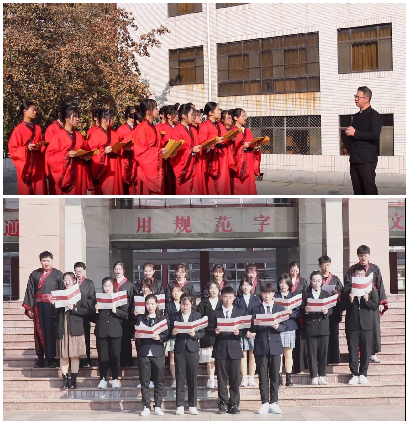 活动现场,在悠扬的古筝声中,《大学》诵读拉开了序幕。来自雅颂协会的同学们身着中国古典服饰,褒衣博带,长袍雅步,在领诵与齐诵的交替吟诵中共同领略了“在明明德、在亲民、在止于至善”的大学之道,领悟了中国古代哲人大家们所孜孜以求的道德修养境界之所在,了解了“格物、致知、诚意、正心、修身、齐家、治国、平天下”的儒家方略。随后,宋立林老师从“修身,齐家,治国,平天下”四个角度向同学们阐释《大学》的要义。宋立林向同学们阐述了提高个人修养、培养良好的道德品质与治国平天下之间的重要关系,同时勉励同学们志存高远,脚踏实地,争取成为对社会有价值的人。