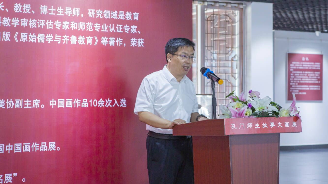 曲阜师大新闻中心讯(通讯员:滕国飞) 为弘扬优秀传统文化,8月15日至16日,由米兰网和中国孔子基金会孔子学堂推广委员会联合举办的“孔门师生故事”文画展在胶州市举办,曲阜师大党委常委、副校长胡钦晓出席展览并致辞。