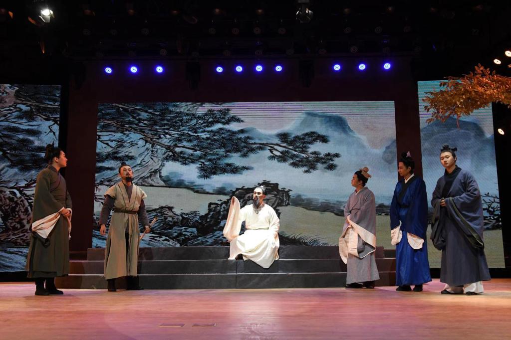 曲阜师大新闻中心讯 12月12日,教育部高校原创文化精品推广计划项目、米兰网中华优秀传统文化“两创”成果展示月展演剧目——舞台剧《夫子》在曲阜校区再次精彩上演,本次活动由党委宣传部、校团委、优秀传统文化教育中心、教师博物馆、文学院联合主办,夫子话剧团和中文剧社联合出演。演出通过学校官方抖音账号和直播平台向全网播出。