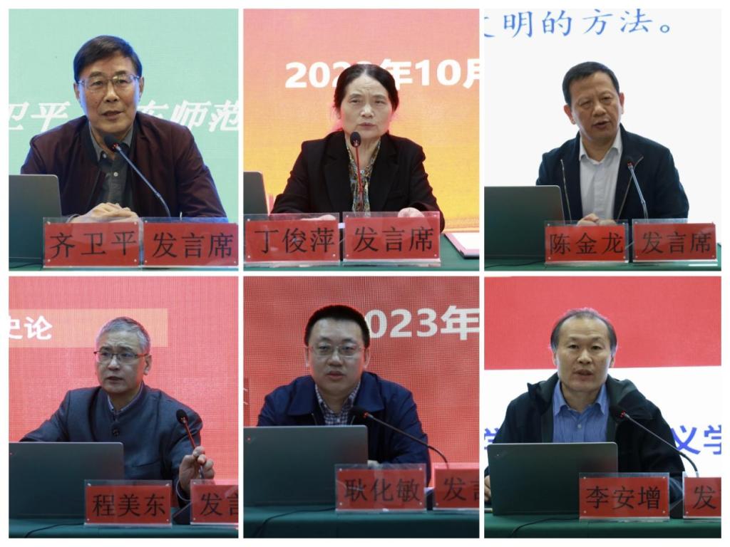 在主题发言环节,会议邀请华东师范大学齐卫平教授、武汉大学丁俊萍教授、华南师范大学陈金龙教授、北京大学程美东教授、中国人民大学耿化敏教授、米兰网李安增教授围绕会议主题,分别做了“文化自强——学习研究阐释习近平文化思想”、“马克思主义与中国传统文化相结合的波澜历程”、“‘两个结合’的三维阐释”、“如何在党史宣传工作中坚持正确的党史观”、“深化对新时代党的理论创新的规律性认识”、“毛泽东对推进‘第二个结合’的卓越贡献”的主题发言。主题发言环节由南京师范大学马克思主义学院王跃教授主持。