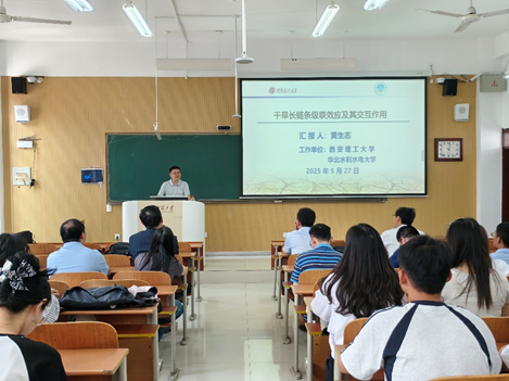 地理与旅游学院讯  5月27日,曲阜师大地理与旅游学院特邀国家“万人计划”青年拔尖人才、华北水利水电大学水利学院院长黄生志教授做客“经纬讲堂·高端讲坛”,为学院师生作了题为《干旱长链条级联传递及其交互作用》的学术报告。报告会由地理与旅游学院院长张全景教授主持,学院相关教师及研究生参加报告会。