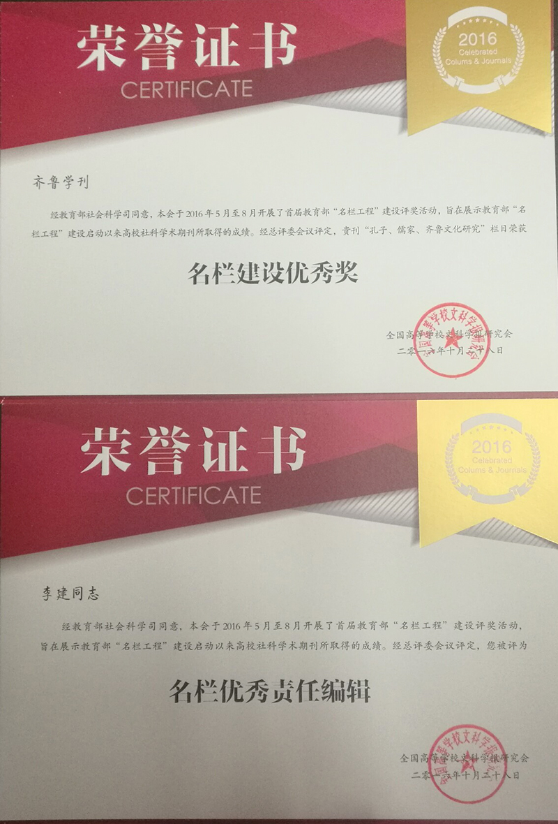 《齐鲁学刊》荣获名栏建设优秀奖