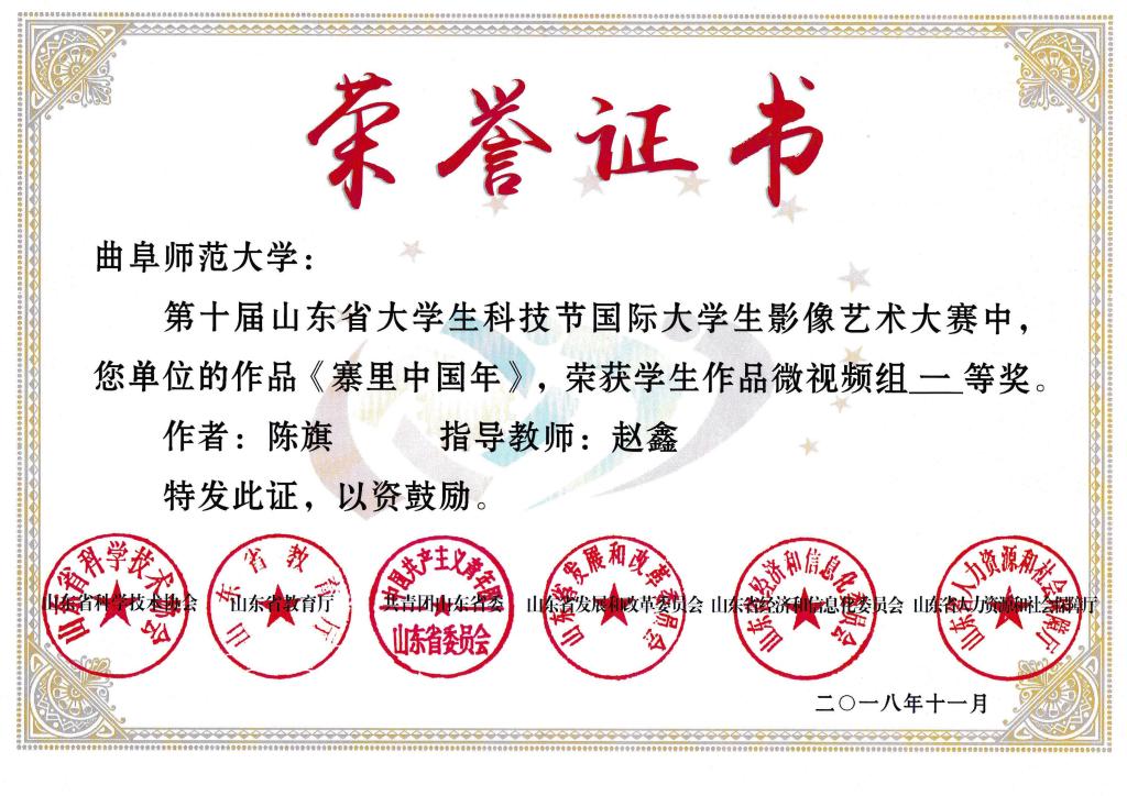 我校学子在山东省大学生科技节国际影像艺术大赛中喜获佳绩
