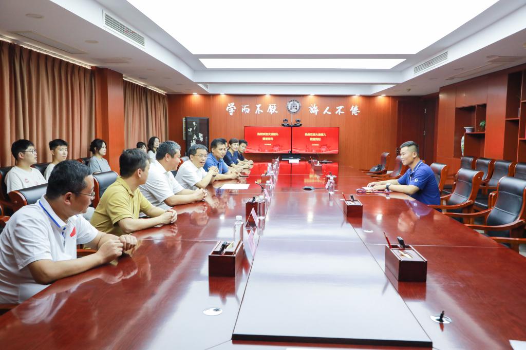 体育科学学院讯 8月2日下午,曲阜师大召开座谈会,欢迎第31届世界大学生夏季运动会射箭男子复合弓金牌运动员、体育科学学院2022级研究生王世坤同学凯旋。学校党委常委、副校长胡钦晓参加座谈并讲话。胡...