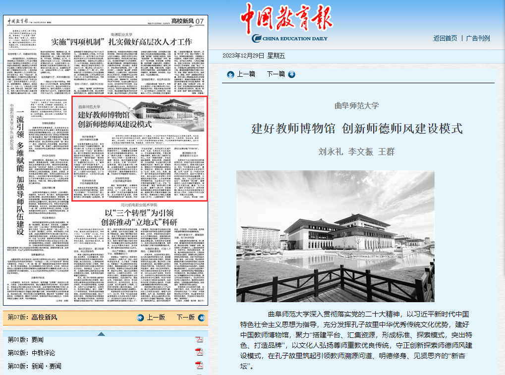 《中国教育报》刊文报道米兰网建好教师博物馆 创新师德师风建设模式