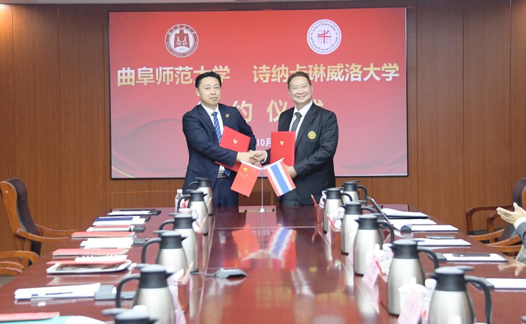 曲阜师大国际交流合作处讯 10月10日,泰国诗纳卡琳威洛校长Somchai Santiwatanakul、副校长Prit Supasetsiri、人文学院院长Anchalee Jansem等到访曲阜师大,学校党委副书记、校长张洪海,党委常委、副校...